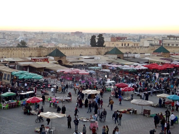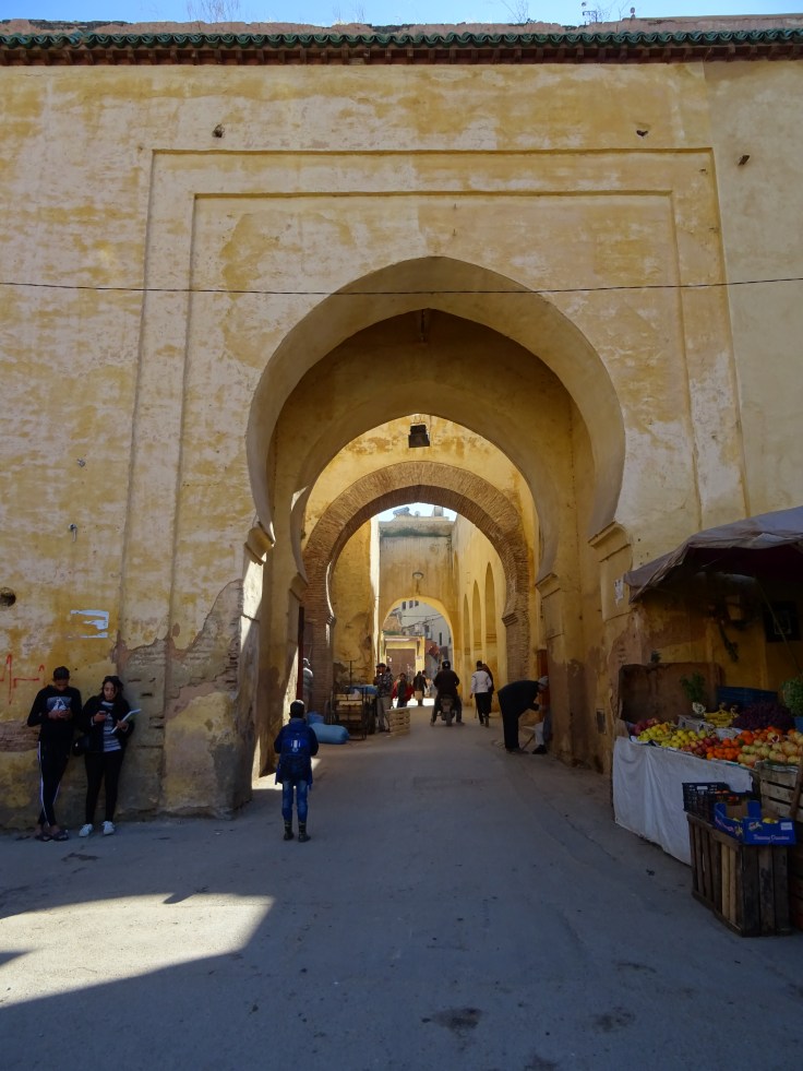 D’abord Bab Mansour, la porte d’entrée de la ville impériale, de toute beauté. Face à elle, la grande place de Lhdim, petite sœur de la place Jamaa l’fna de Marrakech. Des charmeurs de serpents, des singes et même une Autruche et plein d’animations en tout genre. Entre les deux la route et franchement si vous arrivez à traverser, bravo ! heureusement, y’a toujours un flic très sympa qui finira par siffler tout le monde pour que vous puissiez passer.